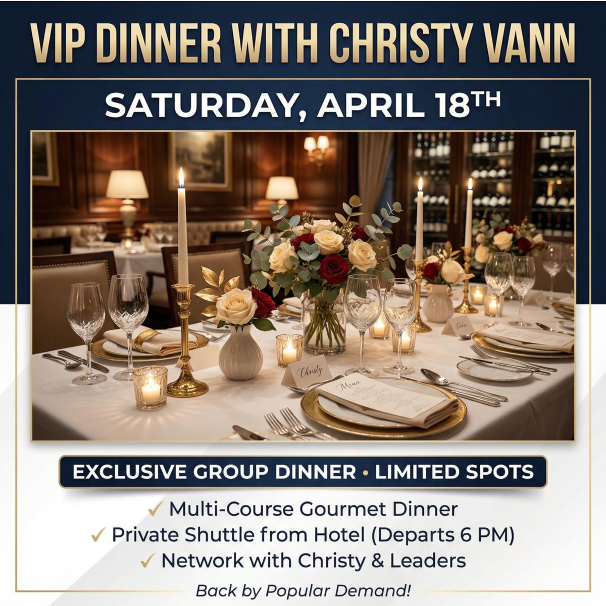 6 PM: 🌟 VIP Dinner with Christy Vann ($200 per person, Limited Spots)
